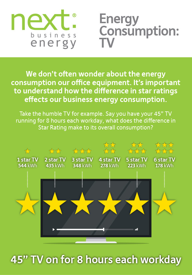 For more information visit the Energy Rating website. If you’d like to keep your TV running all day without worrying about the expense, upload a copy of your most recent business energy bill to Next Business Energy and our Australian-based team will find our best deal for you.