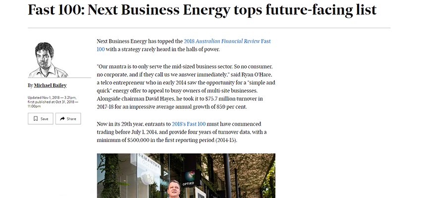 Each year we continued to grow and in 2018 we were awarded top spot in the AFR FAST 100.