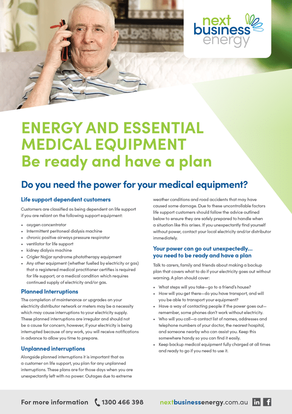 If you, or a member of your household, depends on life support, you must register this on your Next Business Energy account.